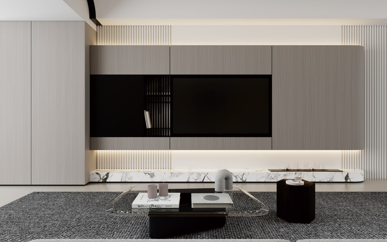 客廳-電視柜背景墻櫥柜一體
